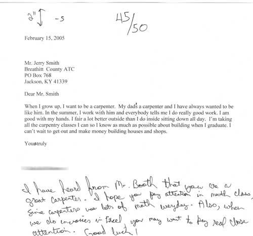 lot about a student. Beyond talking, I have the students write me a letter